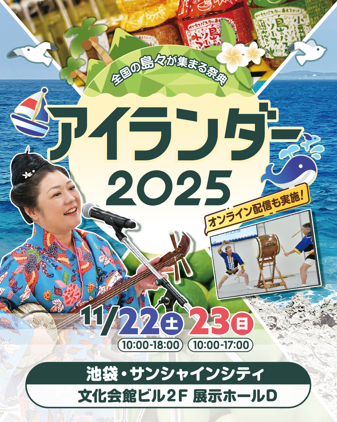 日本全国150超の島々が集まる祭典「アイランダー2025」が、今年も開催され「江田島市」が出展します!「島と都市」、「島と島」をつなぐ交流イベント「アイランダー」は今年で33回目。島の魅力を体験できる、年に一度の「島の祭典」として親しまれています。島の人・文化・食といった、島の魅力を感じられるアイランダーへぜひお越しください!江田島市のブースでは、島の紹介や移住相談、特産品をご用意して、池袋サンシャインシティで皆さまのお越しをお待ちしています。江田島市をはじめ、全国の島々と直に交流できるこの機会をお見逃しなく!【開催概要】日時:11月22日(土)10:00~18:00 11月23日(日)10:00~17:00会場:池袋サンシャインシティ文化会館ビル2階 展示ホールD (東京都豊島区東池袋3丁目1)入場:無料▼イベント詳細はこちらをご覧ください公式ホームページ